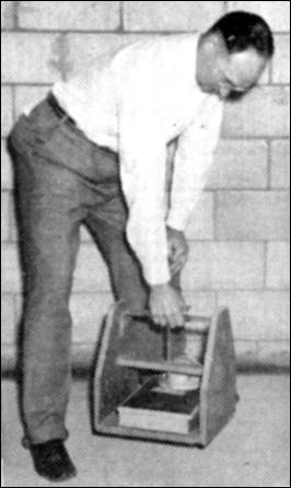 A few years ago we used to promote a weight lifting contest in connection with a local Fall Festival program every fall. One of the most popular contests was the gripping contest. To test the grip of the farmers and labourers present, we built a framework in which we place a regular bathroom scale. On the platform of this was placed a rod about a foot long on the end of which was welded a crosspiece. This rod passed through a cross brace of the frame which formed a part of the handle. When the crosspiece on the rod was squeezed towards the cross brace of the frame, it registered on the scale thus indicating accurately the grip of the man. The two cross pieces were properly spaced to fit most hands. The whole thing had to be picked up between the legs and held in mid-air while making the attempt. Thus the competitor could not cheat by pushing down against the handle with his bodyweight and it was thus made a pure test of gripping strength. This is the most honest testing device we have ever seen. Such a machine is easy to make and is an excellent method of developing a tremendous grasping squeeze. With it you can also have an accurate record of your progress. You should procure a good scale to be used in this device-one operated by levers rather than springs if possible.