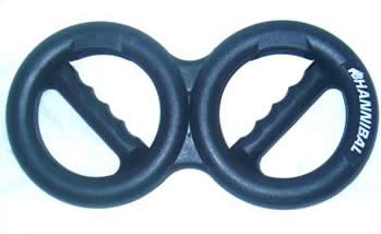 Martial arts gripper with a black plastic frame. When I  snapped my thumb ligament, I used this apparatus successfully for thumb rehab  and training.